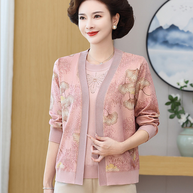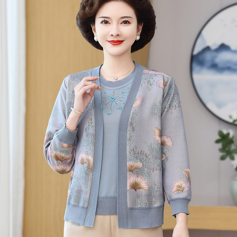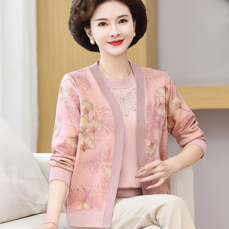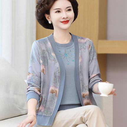 妈妈秋装两件套小衫中年女针织衫上衣中老年女装春秋外套开衫时尚