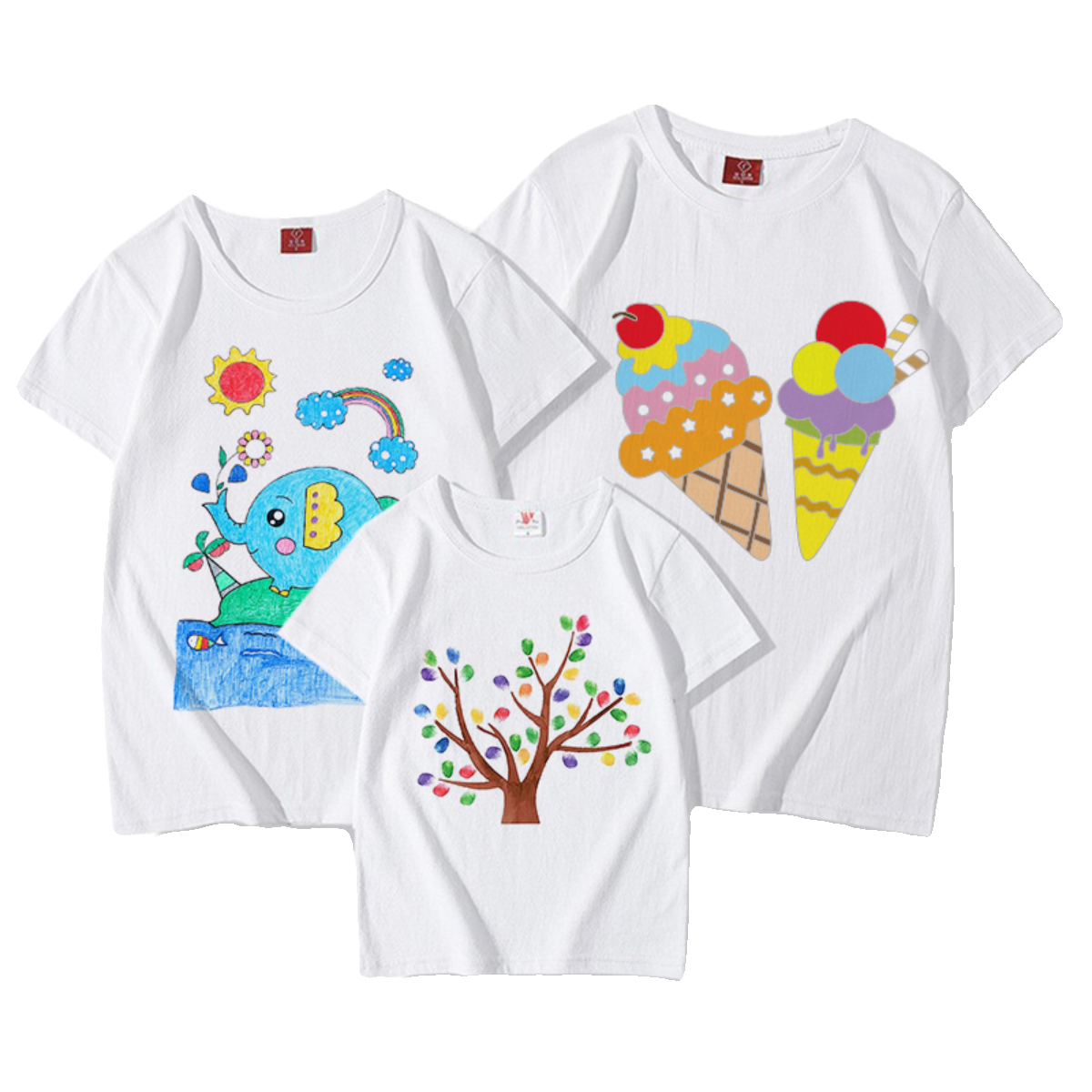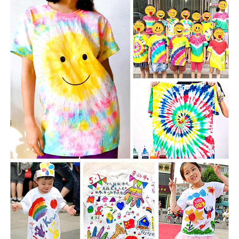 手绘T恤涂鸦定制亲子纯棉儿童空白广告文化衫印字logo绘画短袖diy