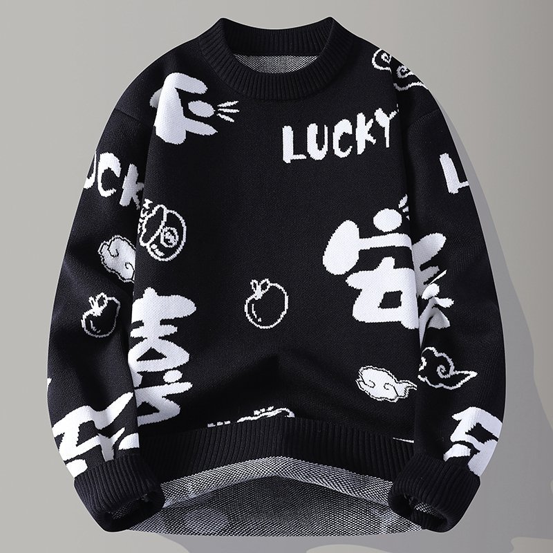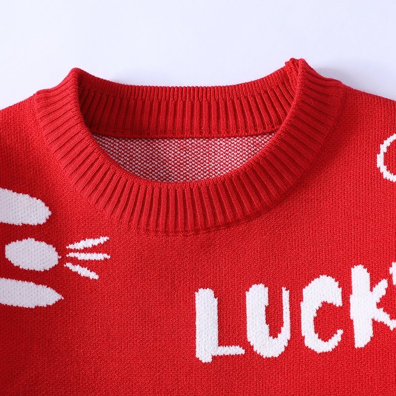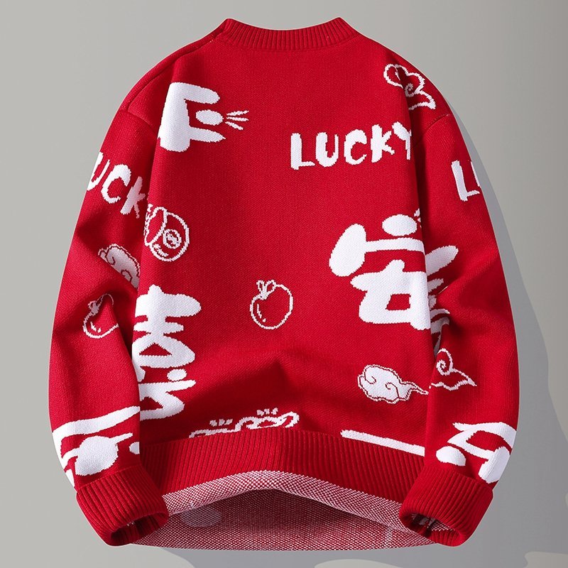 国潮红色毛衣男款冬季加厚本命年针织衫青少年保暖毛衫上衣服以純