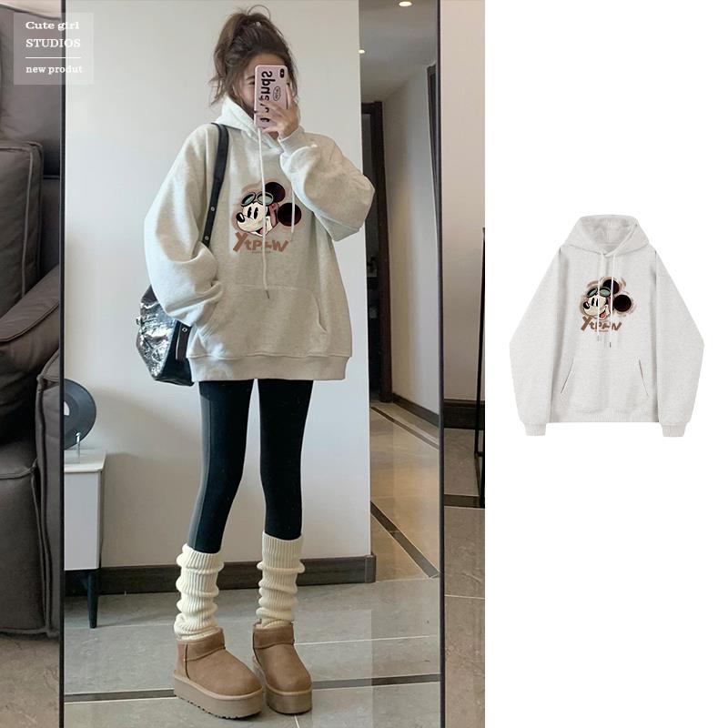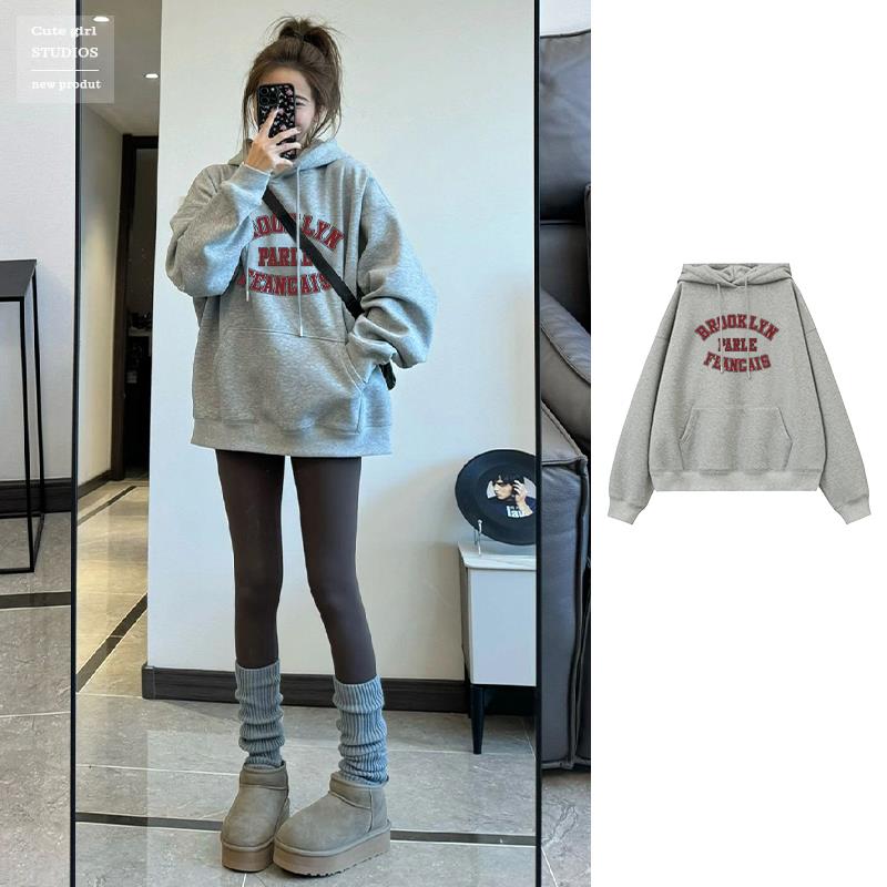 新款秋冬季中长款连帽套头卫衣女加绒加厚宽松外套爆款上衣潮ins