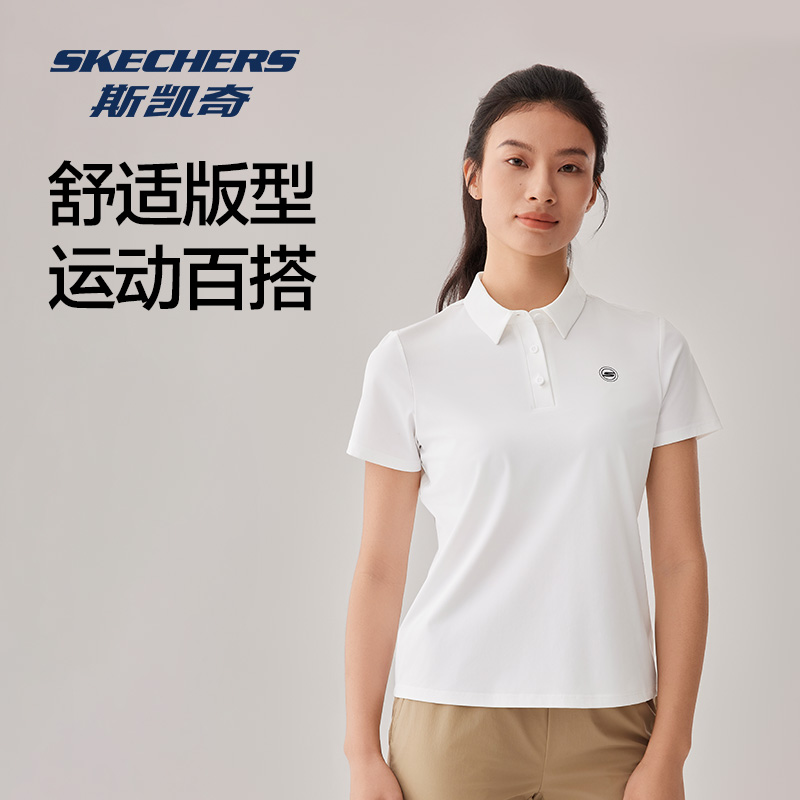斯凯奇2025年秋季新款女防晒凉感修身短袖polo有领运动高尔夫T恤