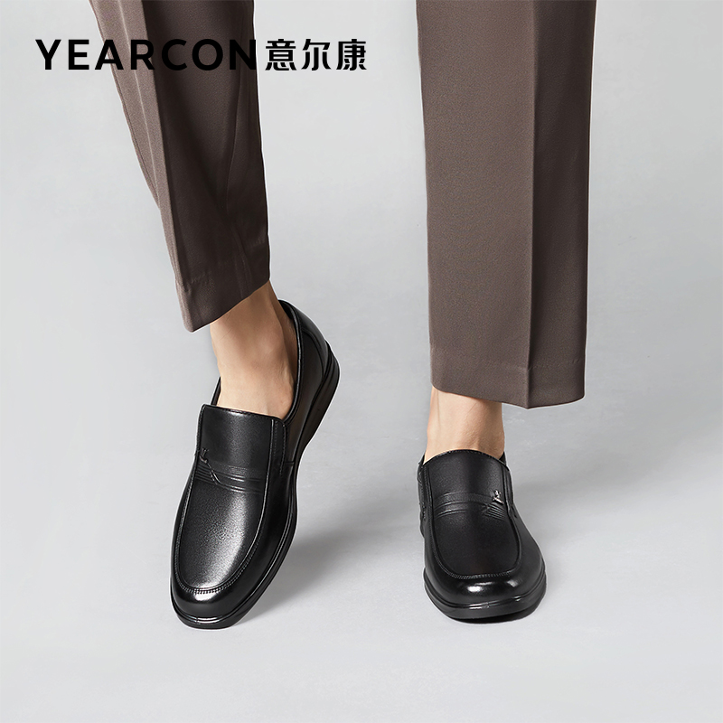 意尔康皮鞋男士真皮正装百搭商务休闲鞋软皮软底中老年套脚爸爸鞋