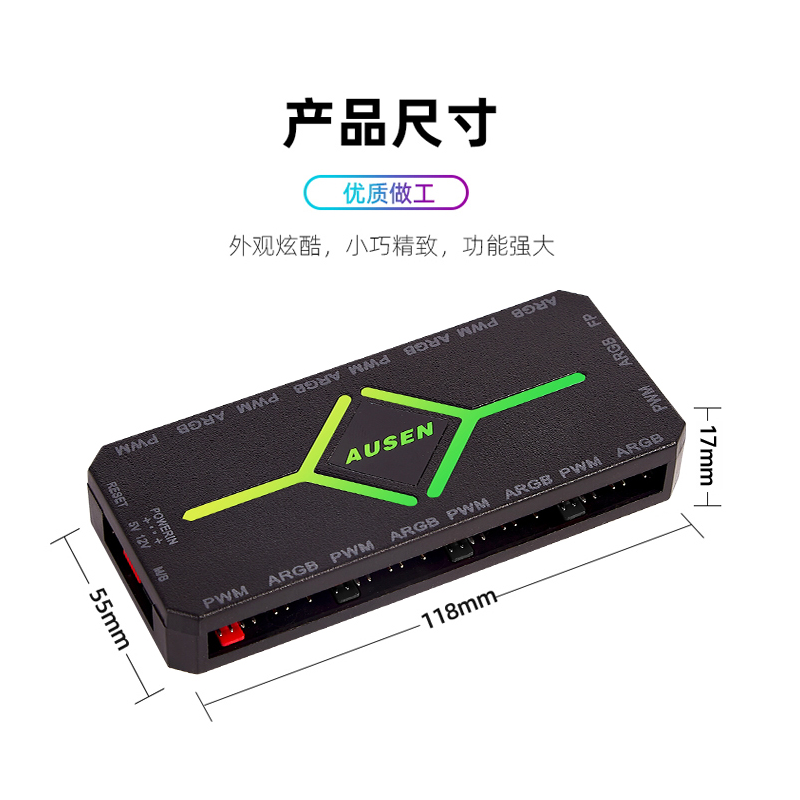 电脑机箱风扇ARGB控制器PWM温控集线器5V3针神光同步二合一控制器