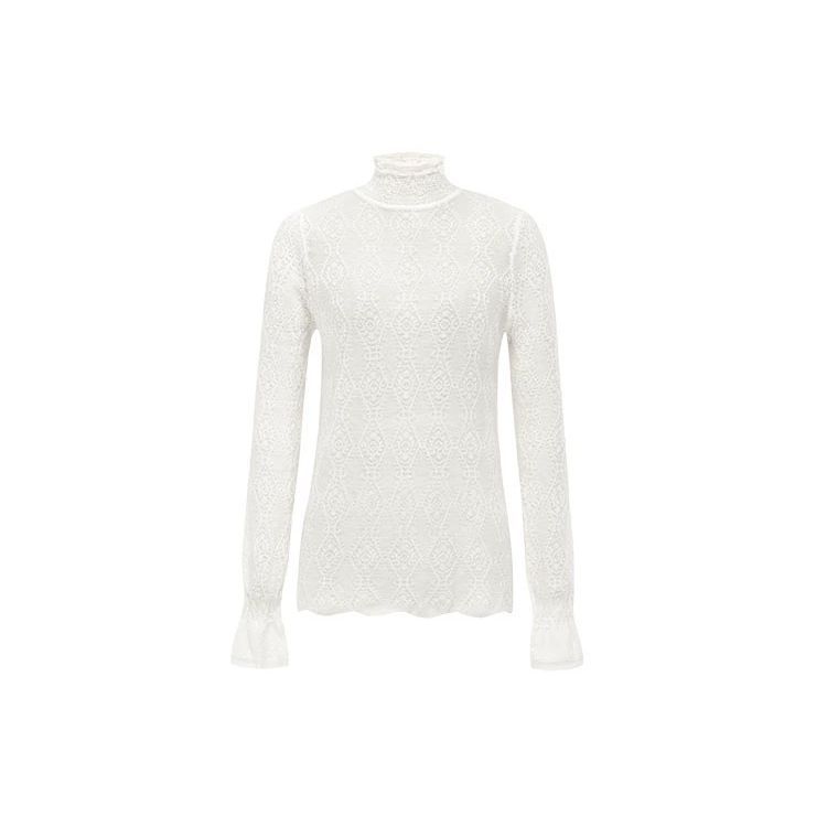 半微透高领针织衫上衣女装纯色镂空蕾丝百搭打底衫女服饰毛衣套头