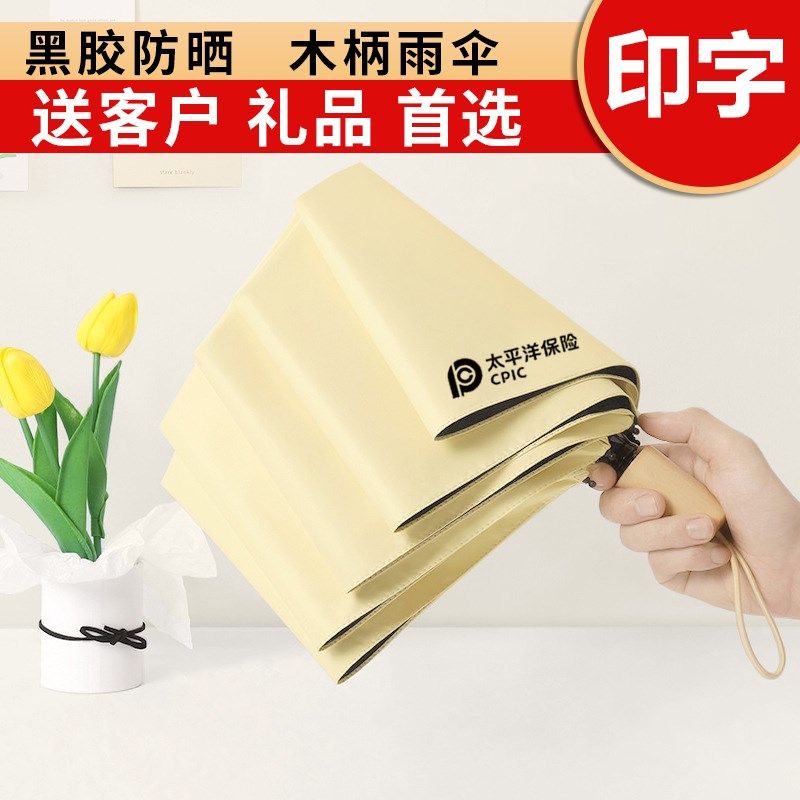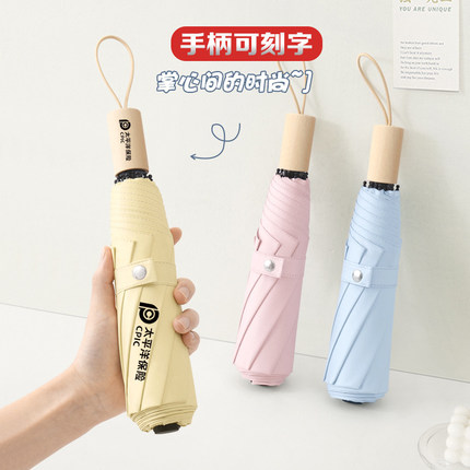 实木手柄黑胶遮阳伞三折太阳伞手柄刻字雨伞定制可印logo广告伞