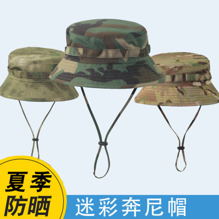 迷彩奔尼帽遮阳防晒男军迷战术小圆帽户外登山帽子钓鱼军训渔夫帽