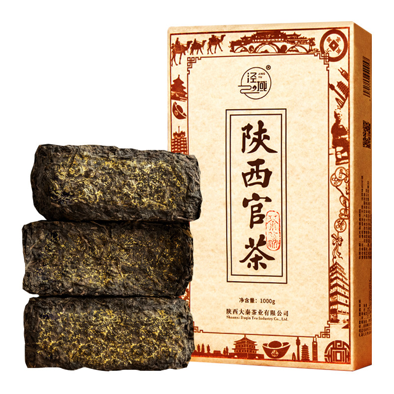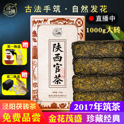 黑茶 泾阳茯茶陕西官茶2017年手筑金花茯砖茶西安特产经典伏茶1kg