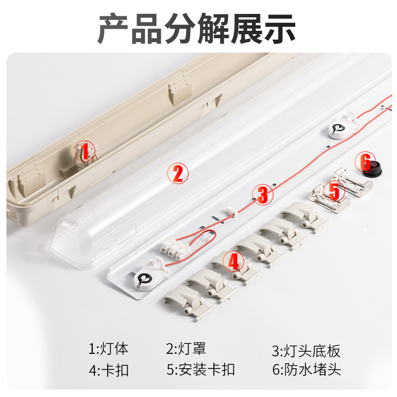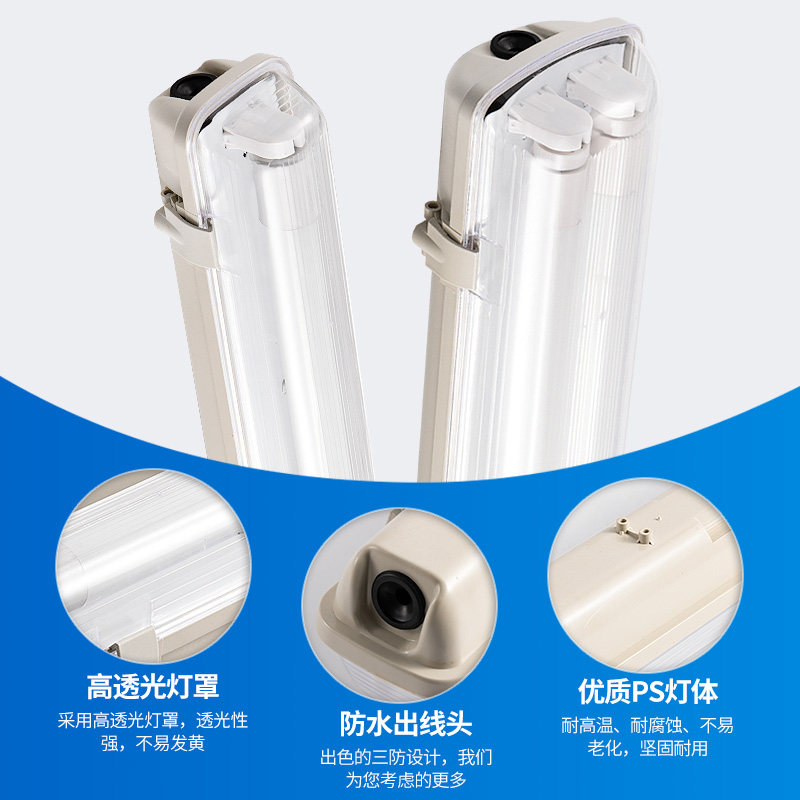 T8LED三防灯全套带罩单双管1.2米防水防爆防尘防潮长条日光灯支架
