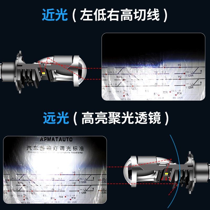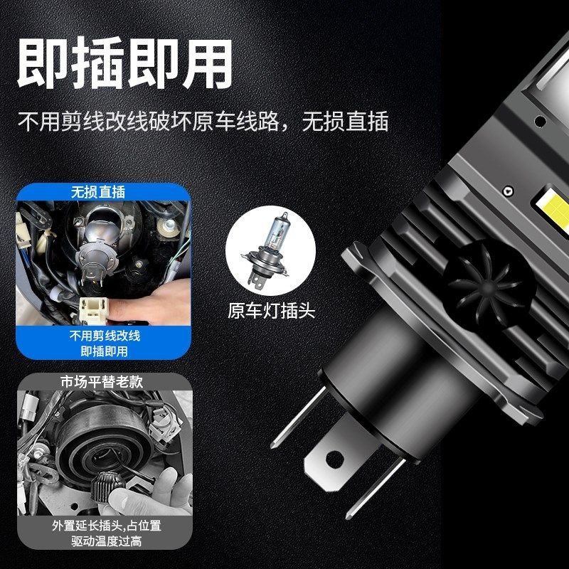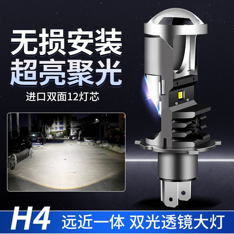 H4远近一体双光自带透镜切线改装超亮汽车led大灯泡摩托车12V聚光