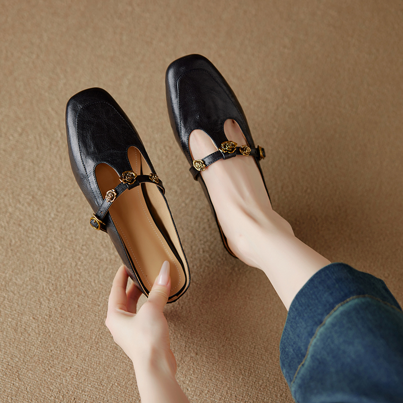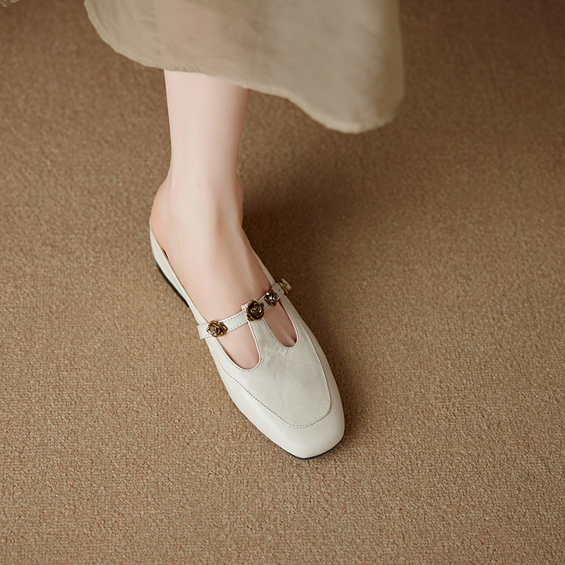 强推自留~!真皮立体山茶花T字扣玛丽珍凉鞋女夏季新款内增高半拖