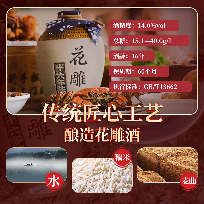 绍兴土特产黄酒十六陈正宗花雕美酒加饭糯米原浆老酒瓶装送礼礼盒