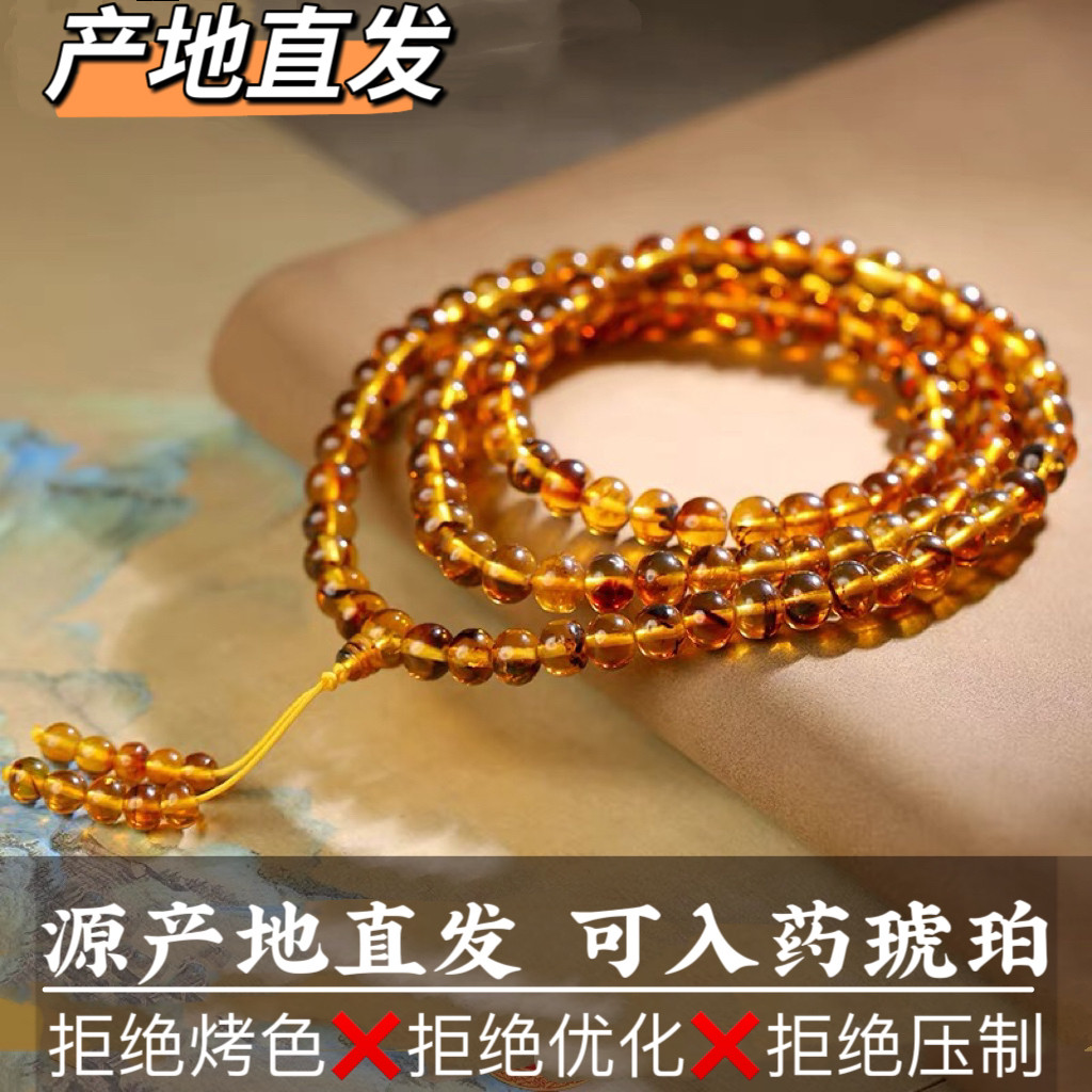 天然原矿药珀抚顺琥珀一级草药珀琥珀蜜蜡佛珠念珠手链项链安神
