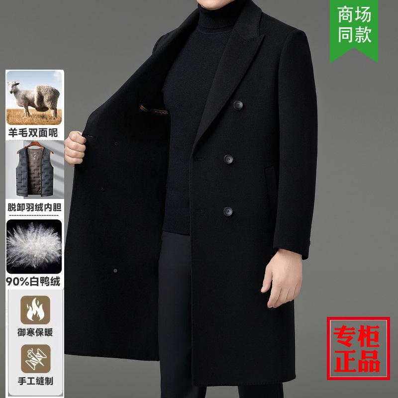 羊毛大衣男士中长款呢19033秋冬纯双排扣面羊绒外套西装领毛呢双