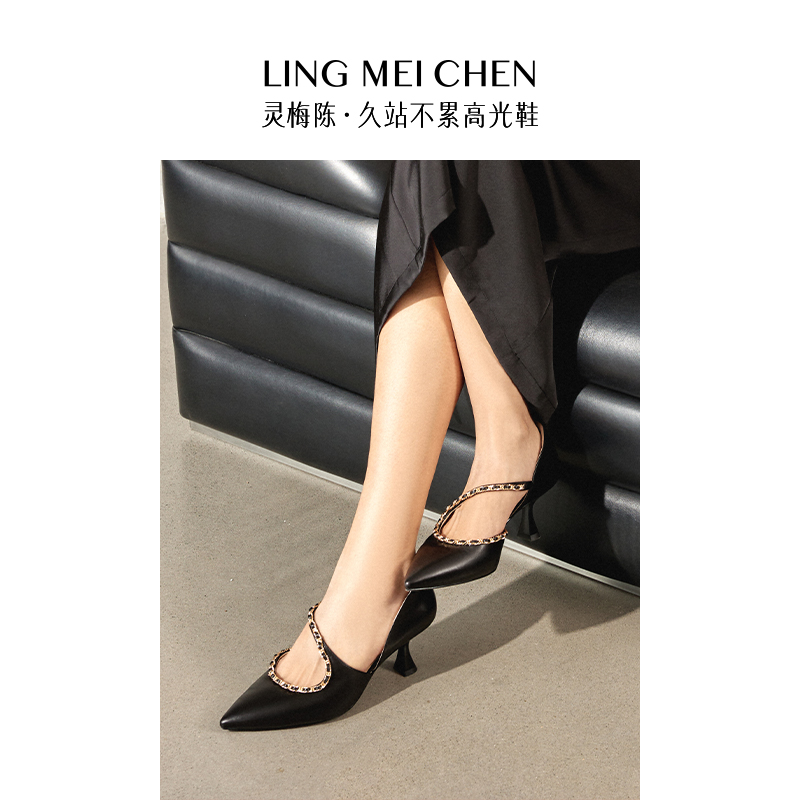 灵梅陈法式镂空尖头高跟鞋凉鞋女