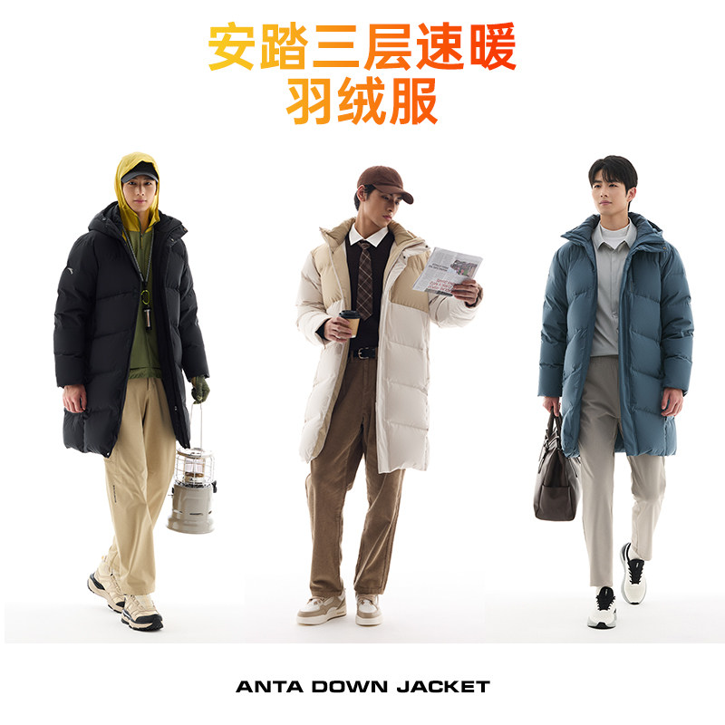 安踏男子中长款羽绒四防