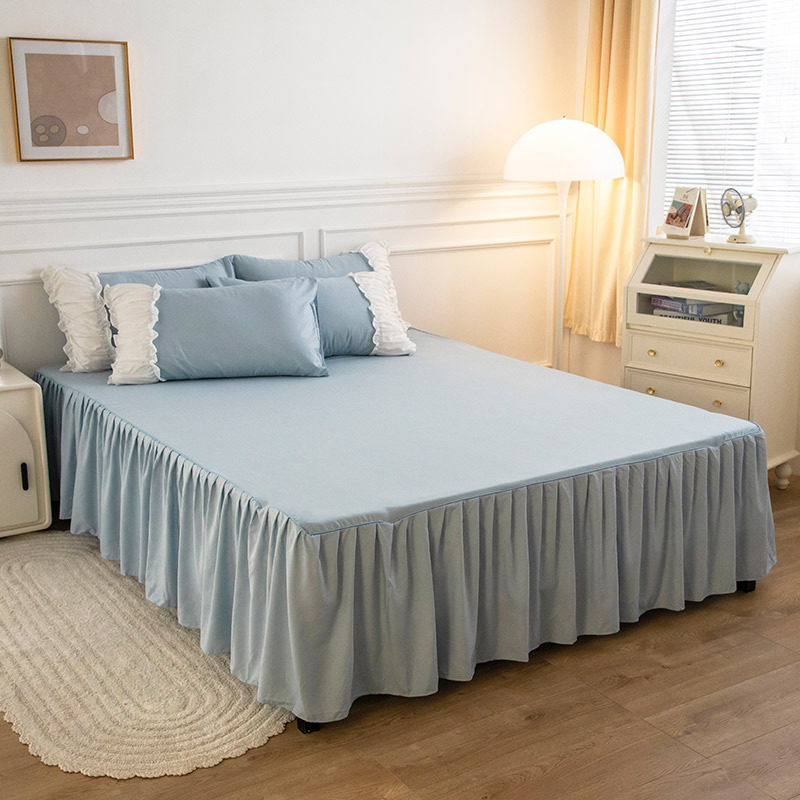 ins公主风蓝色花边床裙被套四件套心纯色床单宿舍床上三件套4