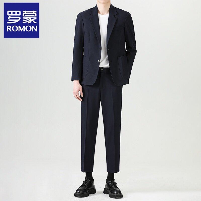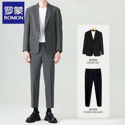 罗蒙西装男套装外套英伦风春秋季高级感修身正装高端商务休闲西服