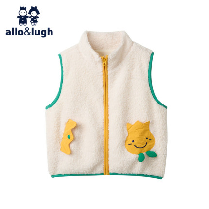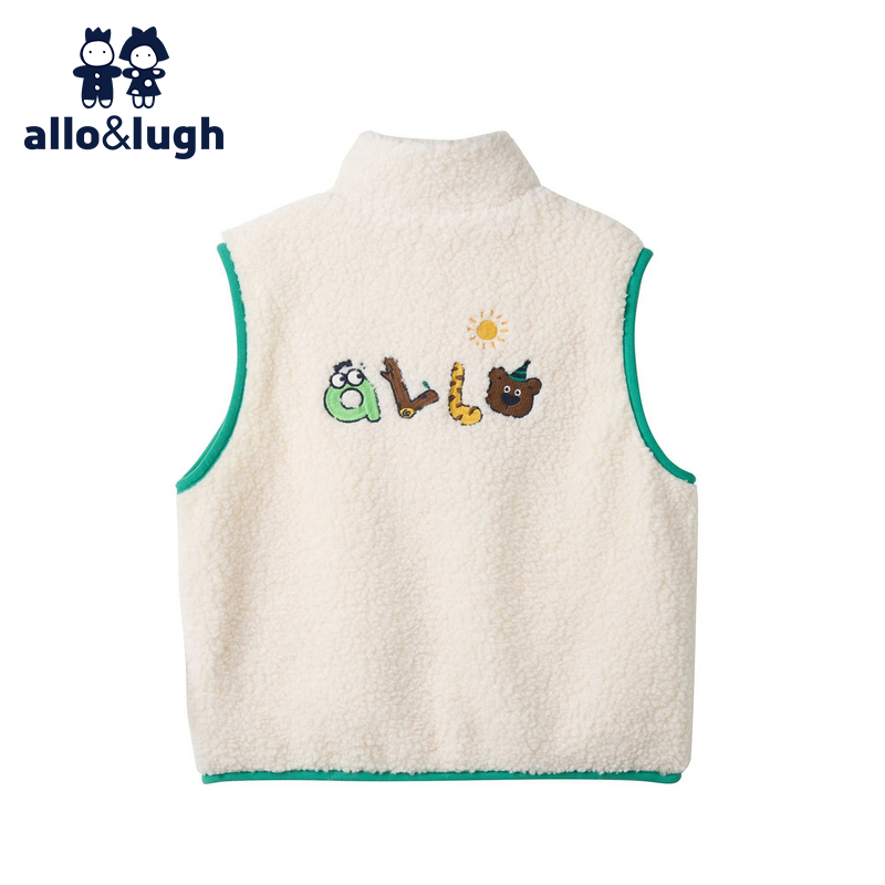 阿路和如男童装秋冬2025新款女童女宝宝儿童刺绣仿羊羔毛马甲外套
