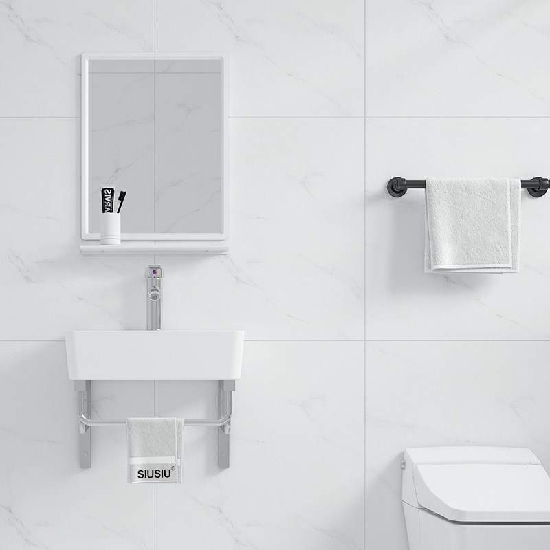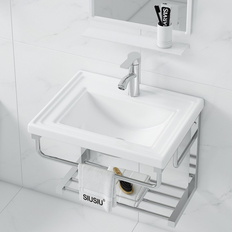 简约挂墙式洗手盆不锈钢支架陶瓷洗脸盆小户型卫生间一体简易台盆