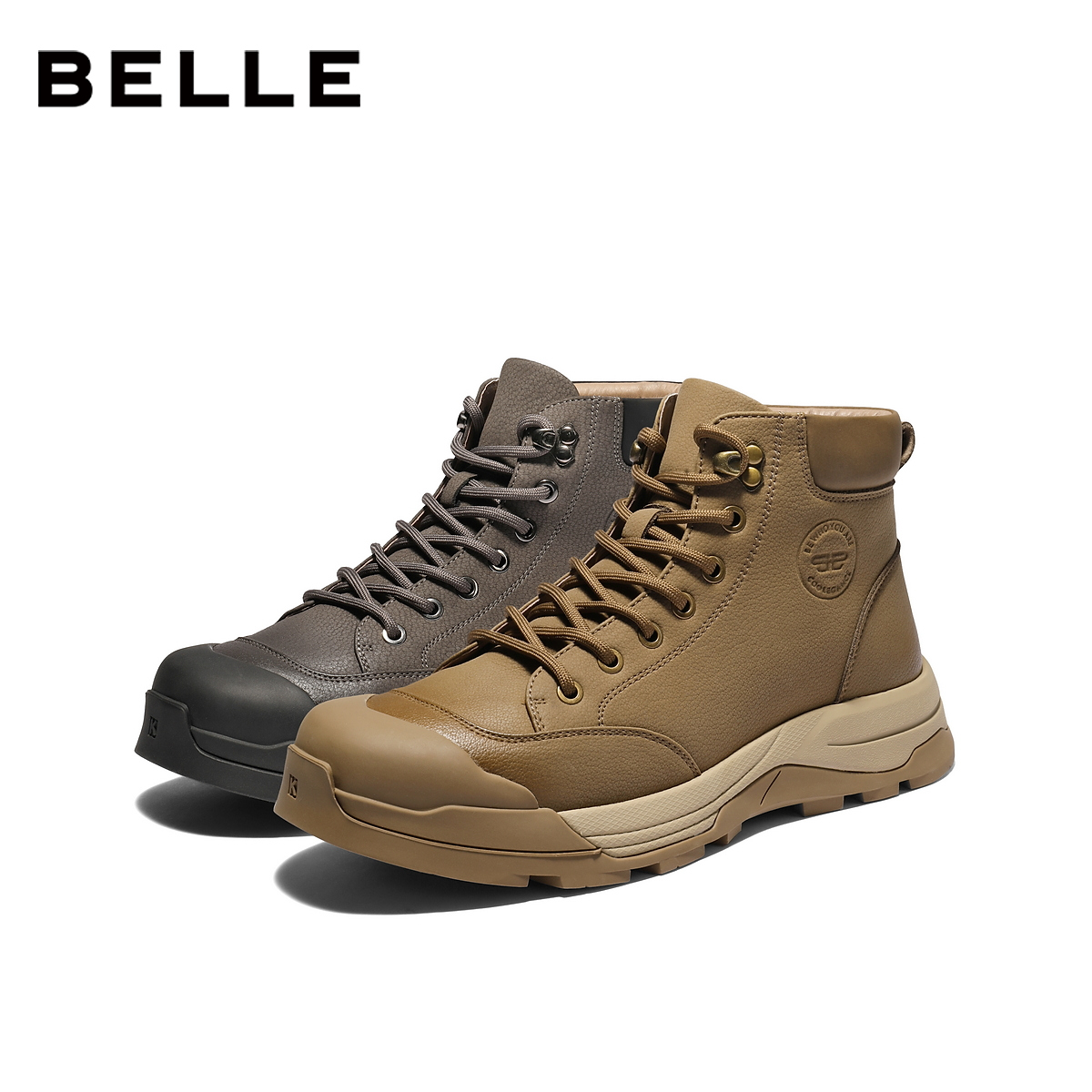 百丽男鞋休闲马丁靴子男士25新冬季厚底增高加绒东北棉靴A2265DD5