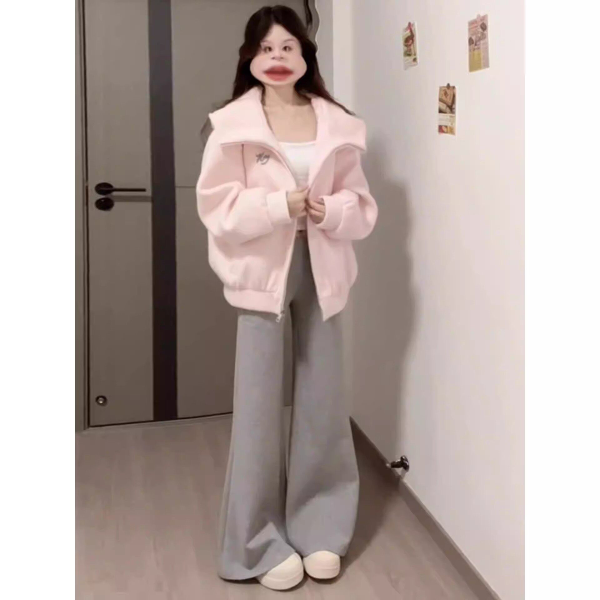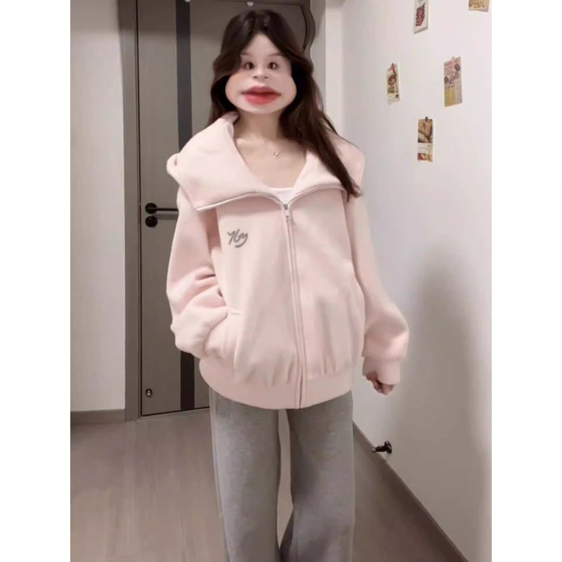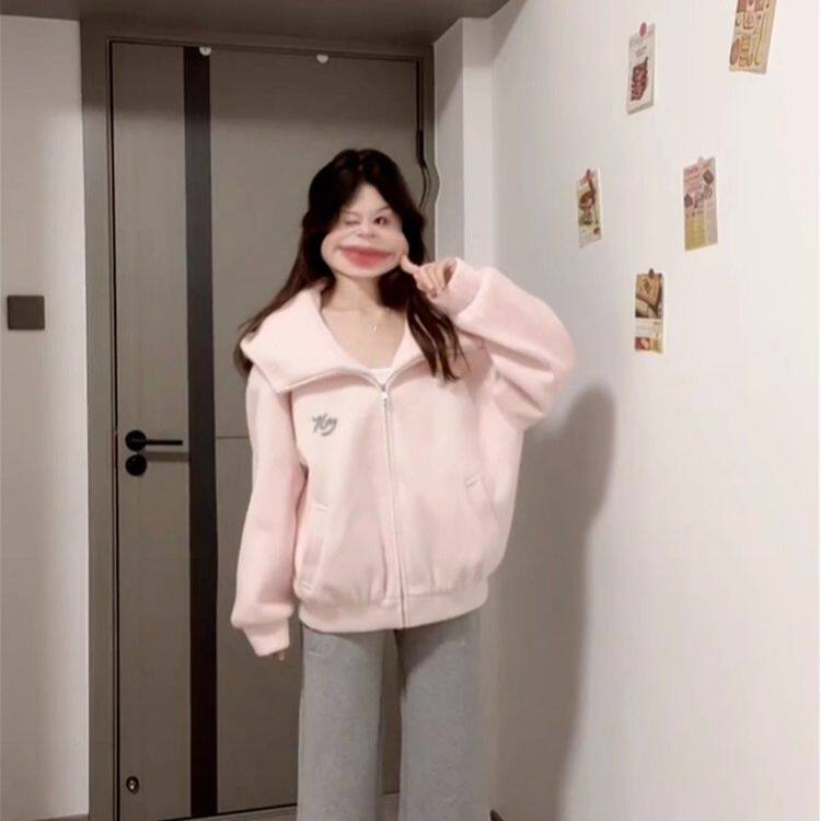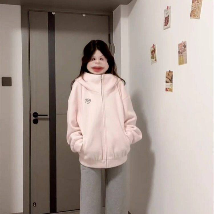欢简韵粉色连帽外套女秋季2025新款今年流行爆款绝美巨好看棒球服