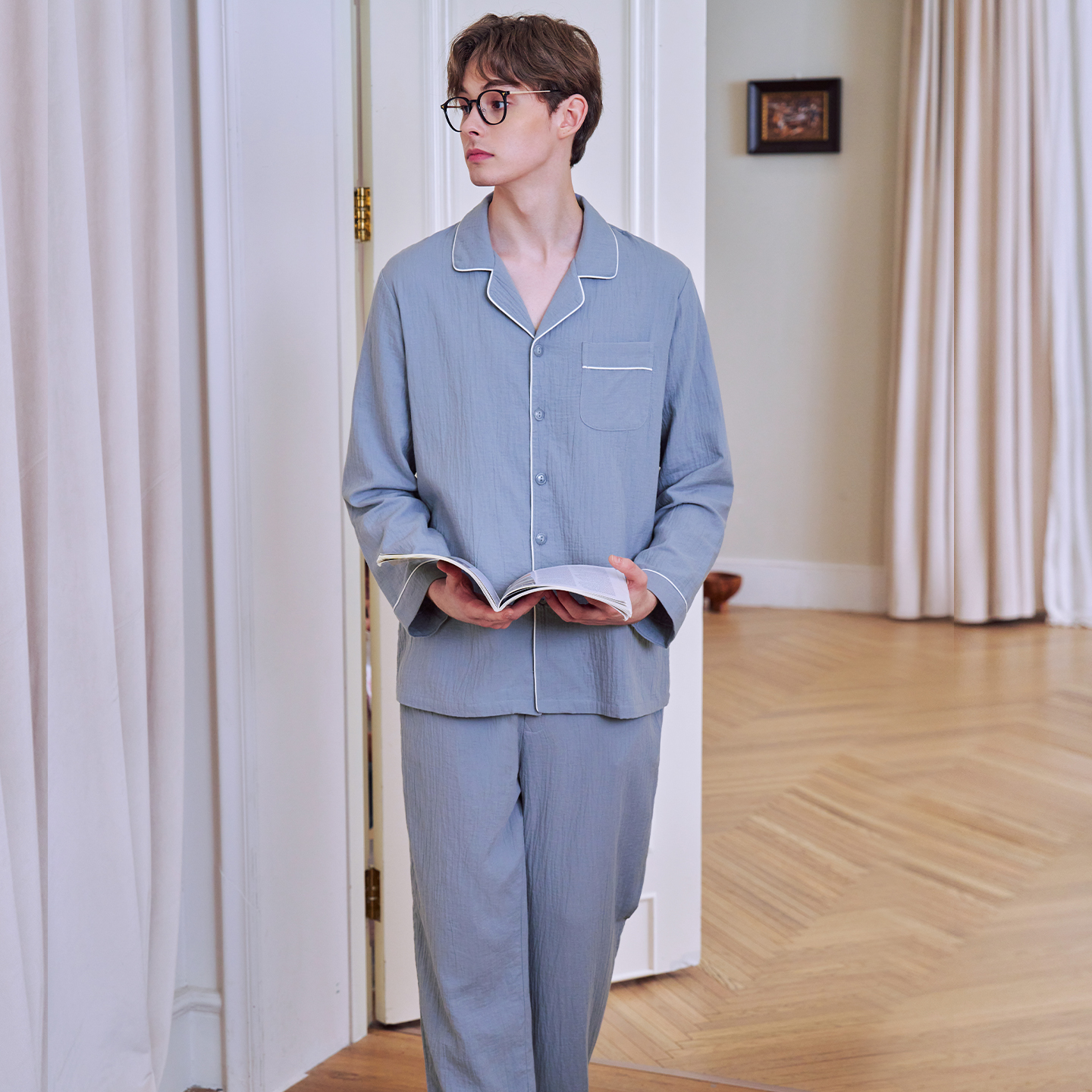 美标男士双层棉纱长袖睡衣套装