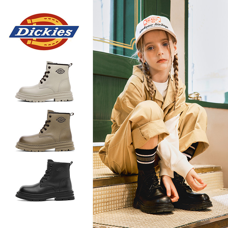 dickies童鞋儿童马丁靴男童2026新款春季男孩子黑色真皮靴子女童