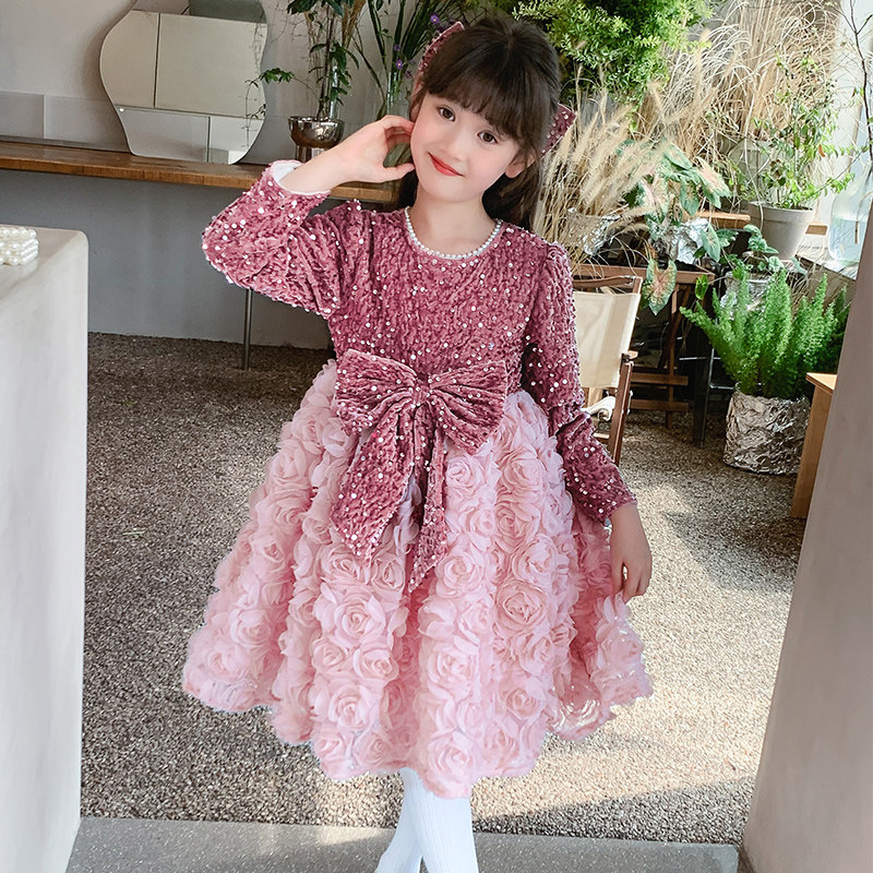 公主裙女童秋冬2025新款洋气小女孩亮片生日裙子冬季儿童装连衣裙