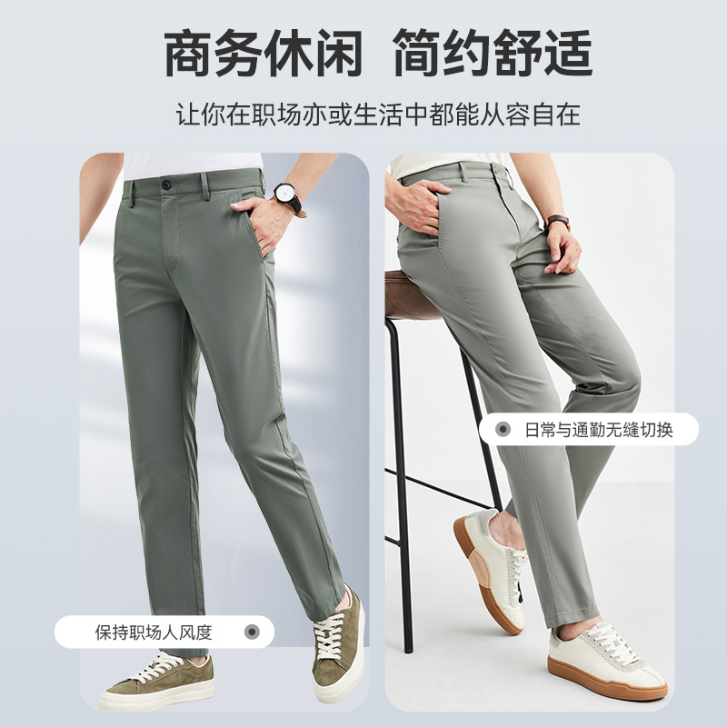 七匹狼休闲裤男士2025夏季新款透气弹力直筒纯色休闲长裤子男装潮