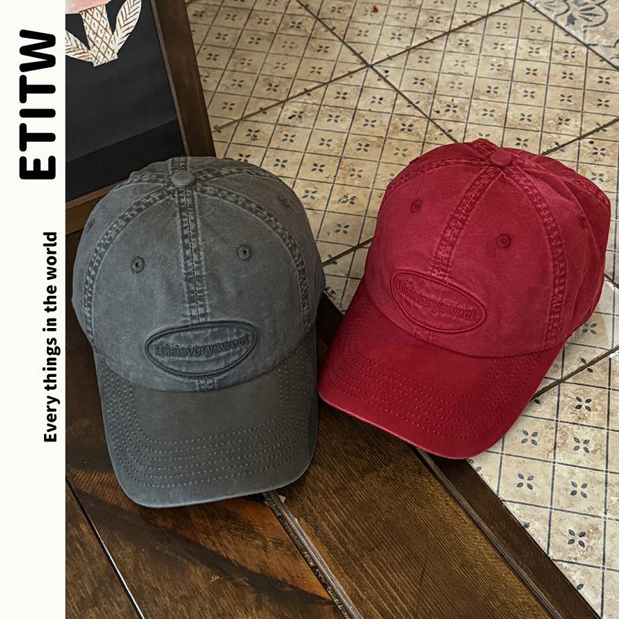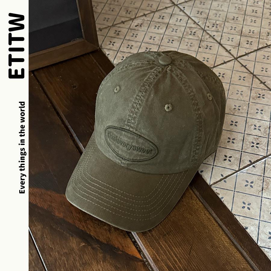 ETITW/水洗加大软顶棒球帽子男女韩版百搭宽檐大头围显脸小鸭舌帽