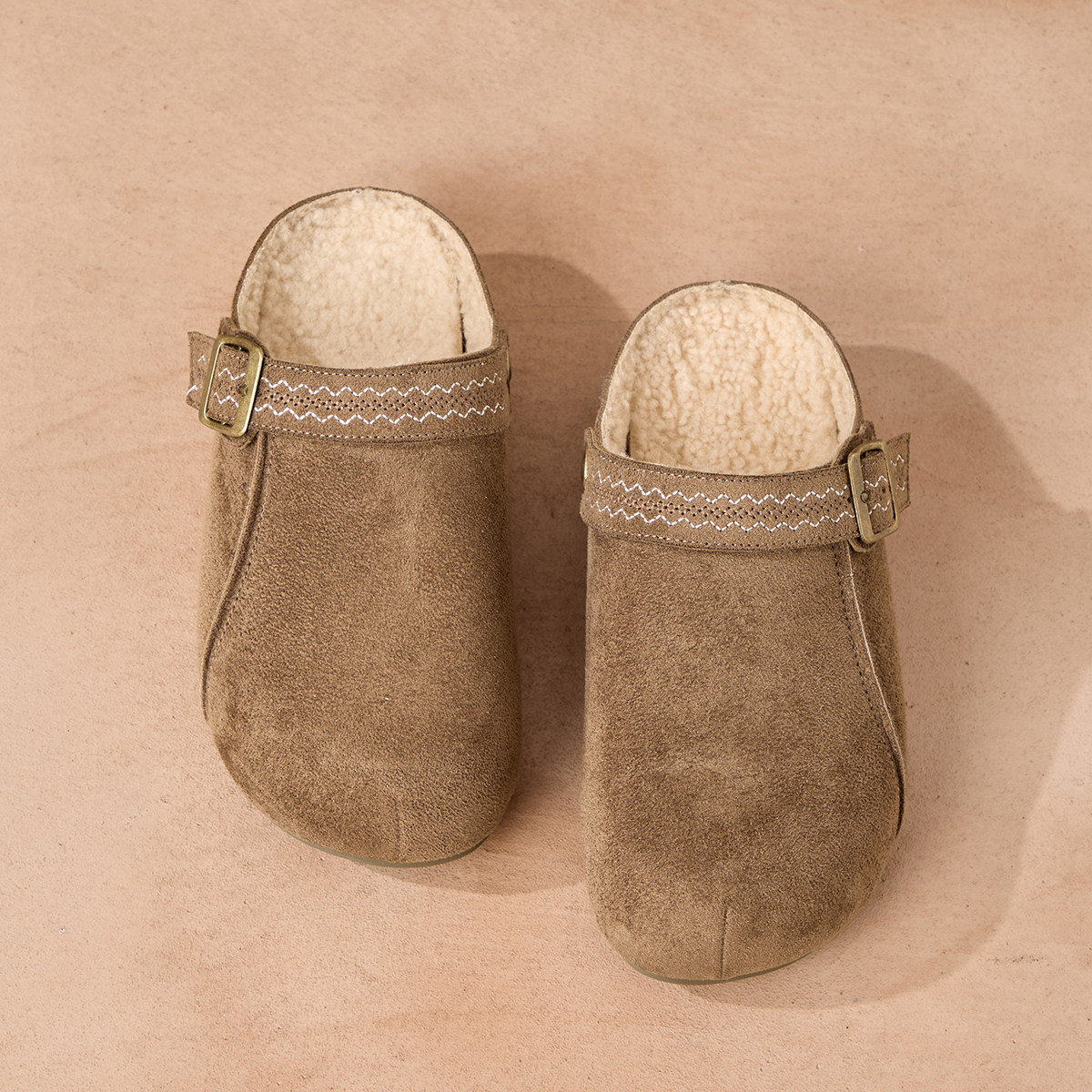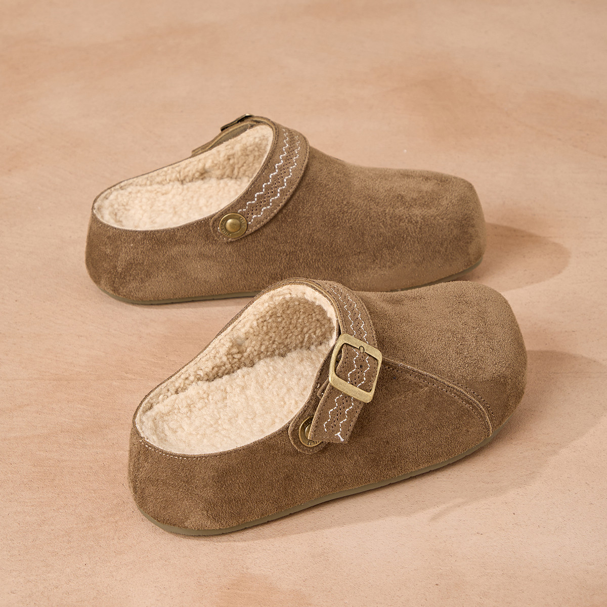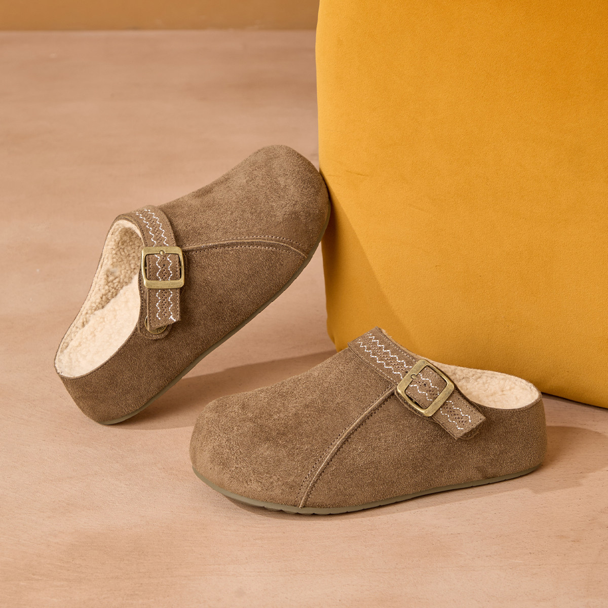 反绒皮勃肯鞋女厚底加绒保暖半包拖鞋冬季舒适休闲鞋