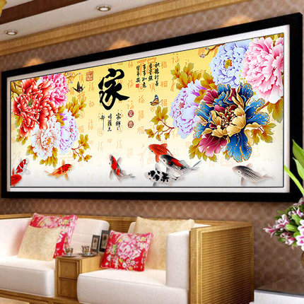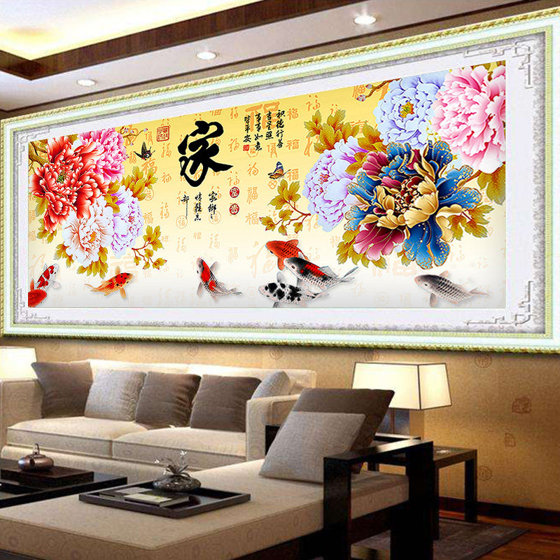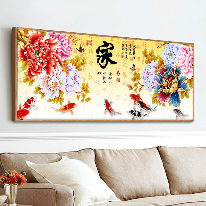 5d炫彩钻石画客厅花开富贵九鱼图