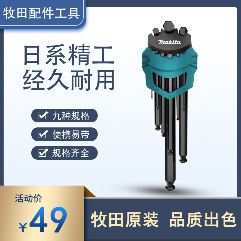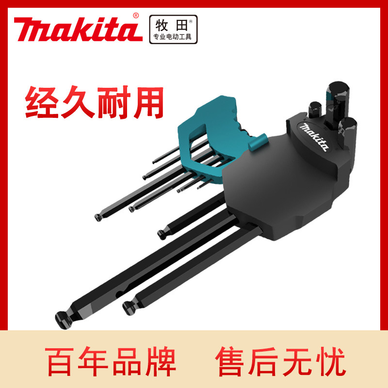 makita日本牧田内六角扳手螺丝刀六边形六方组合公制六棱扳手套装