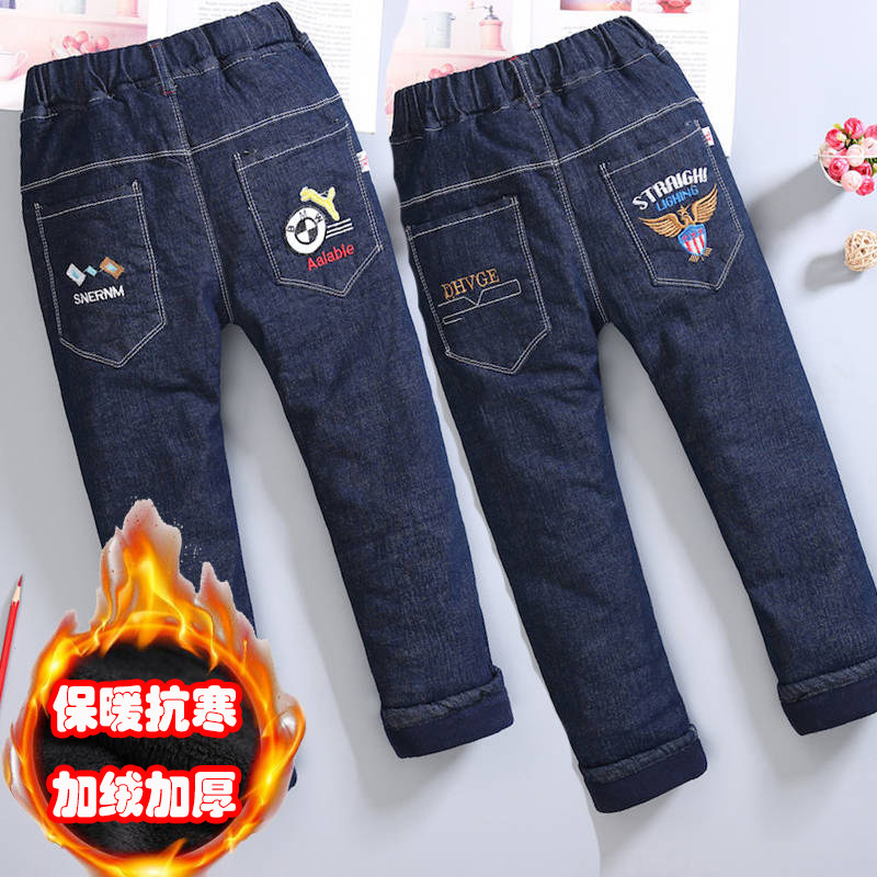 男童加绒牛仔裤加厚2025秋冬季新款韩版中大童儿童装保暖外穿修身