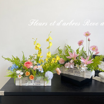 法式田园莫奈花园仿真花假花干花实木栅栏玄关盆栽餐桌花艺摆件