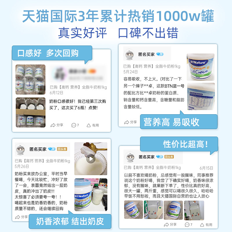 贝特恩蓝一号牛奶粉原装进口全脂成人女士儿童旗舰店正品官方