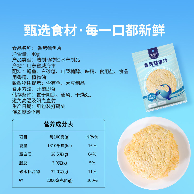 佰利佳 香烤鳕鱼片盒马同厂低脂高蛋白儿童休闲海鲜海味健康零食