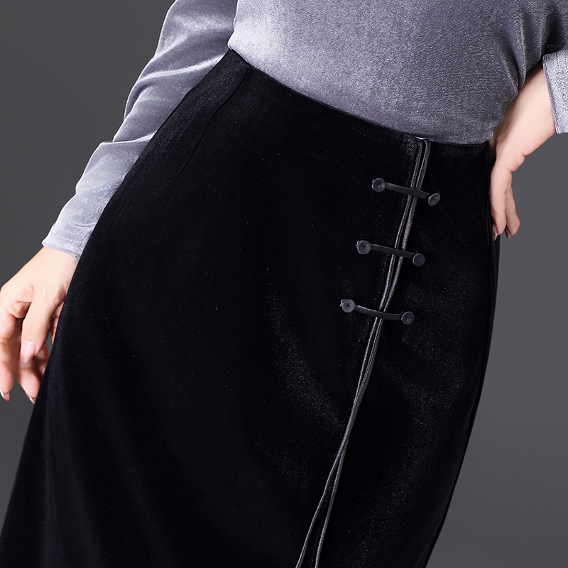 金丝绒包臀半身裙女春季2025新款开叉直筒裙中长款气质高腰一步裙