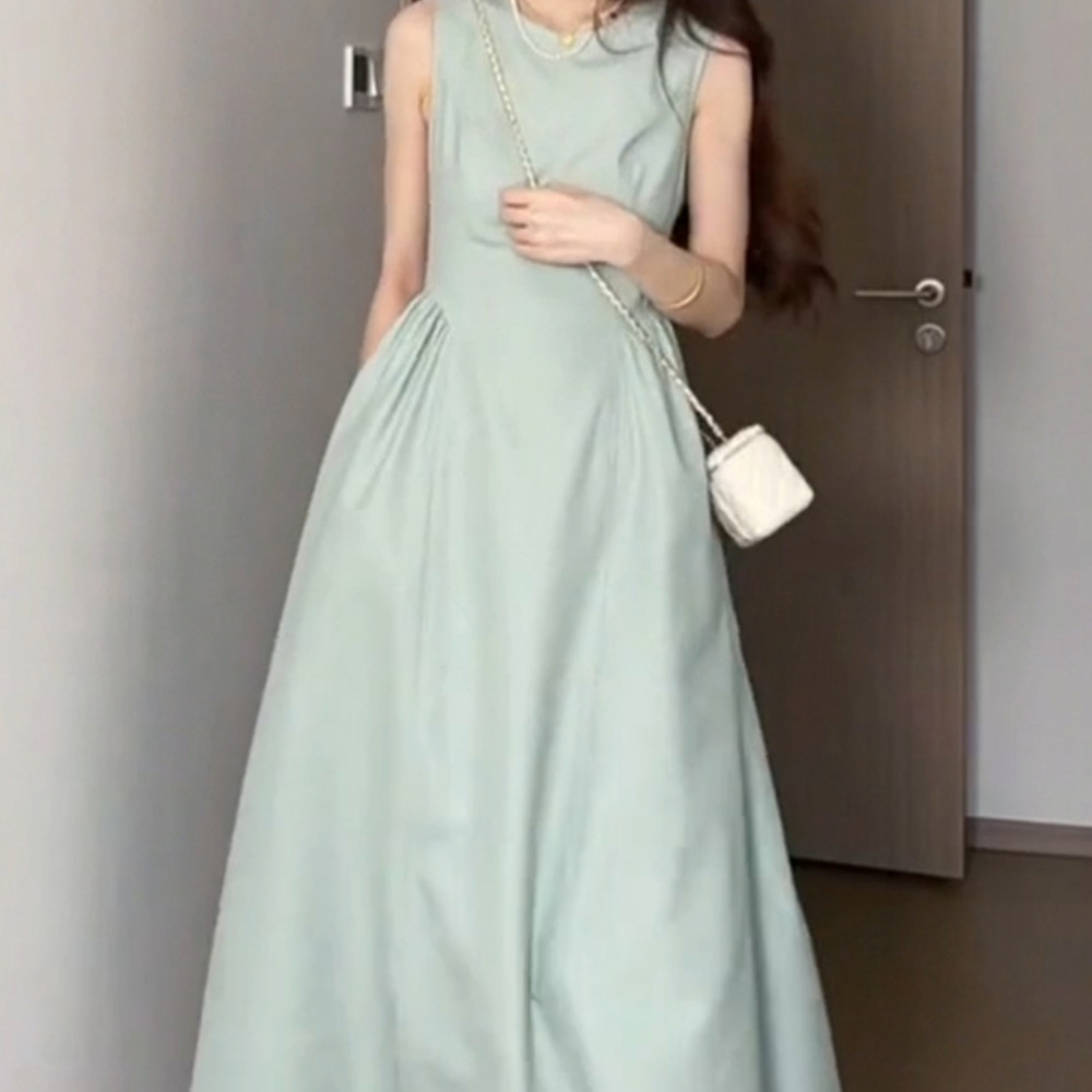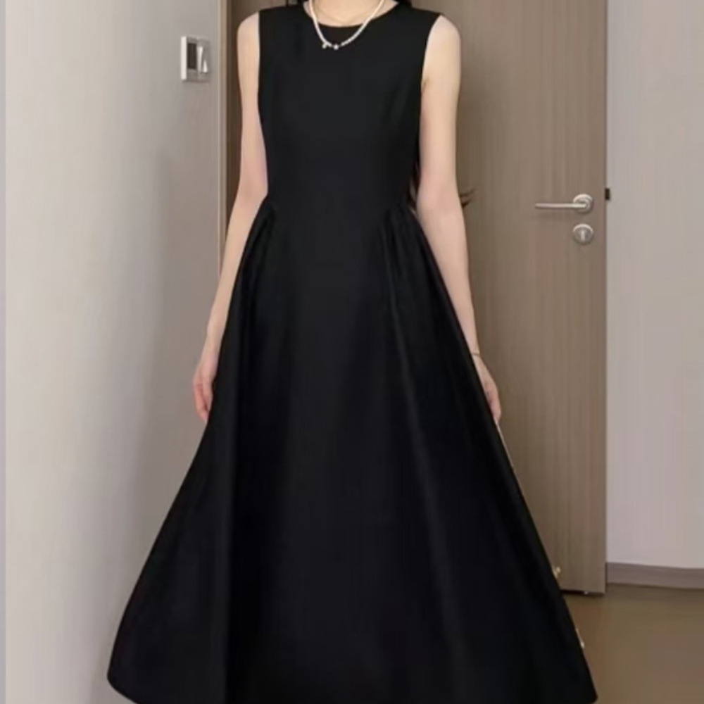 2025粉色气质无袖背心连衣裙子中长裙法式显瘦高端别致绝美