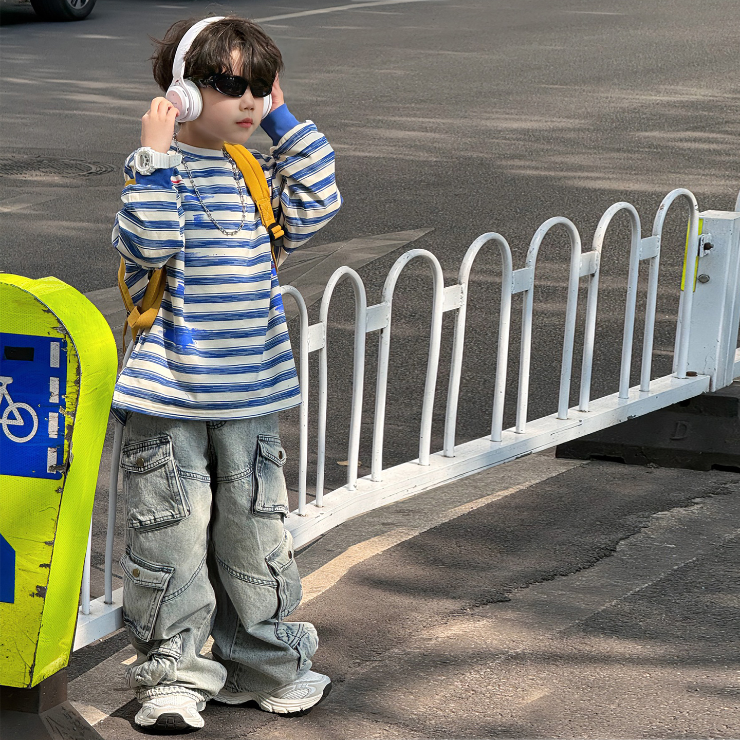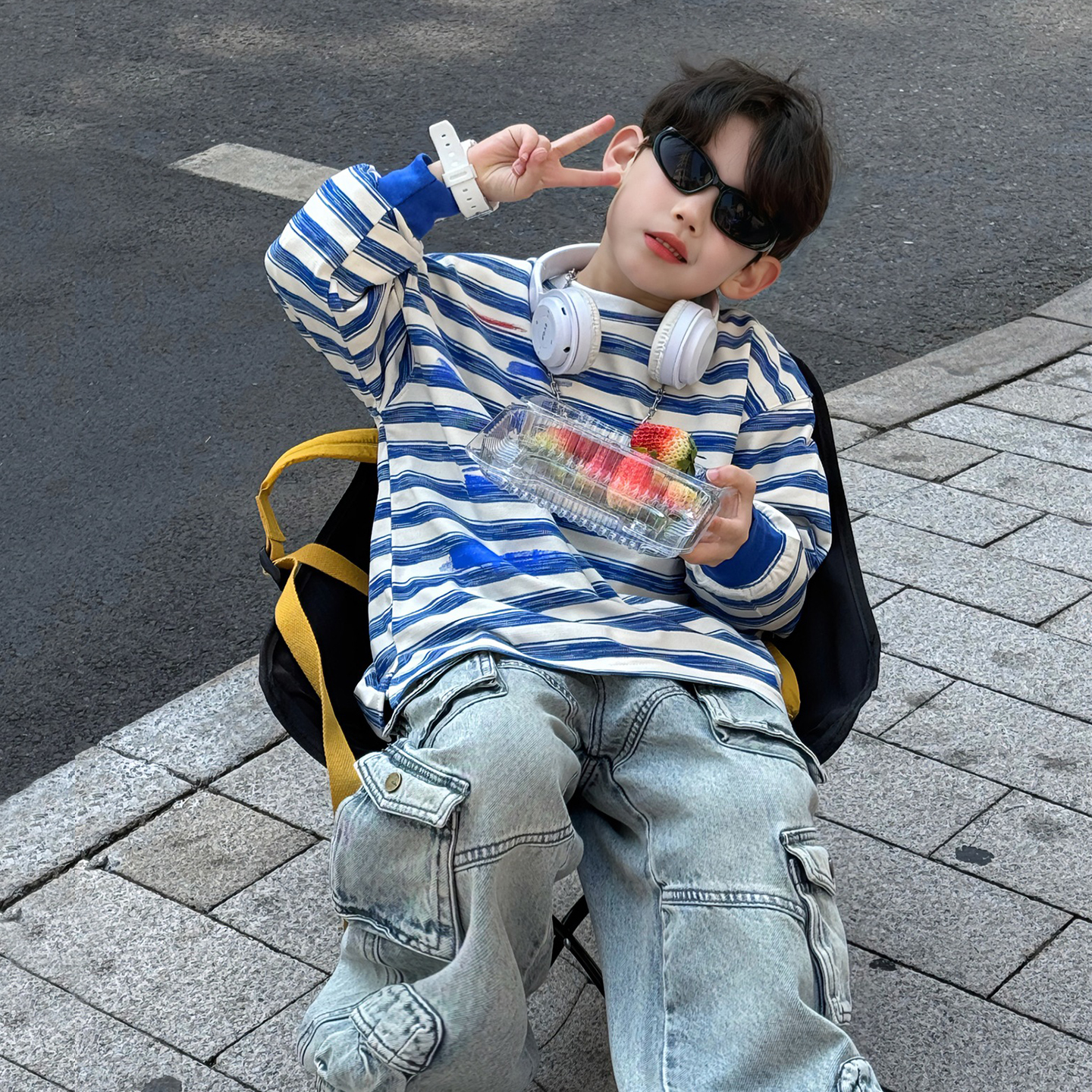 森许男童秋装长袖t恤儿童条纹打底衫2025新款韩版潮酷男孩上衣