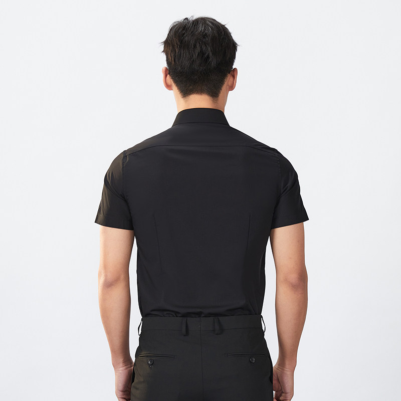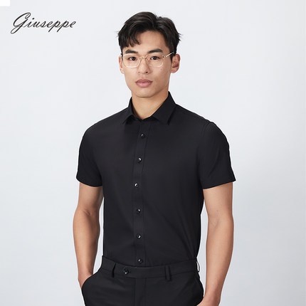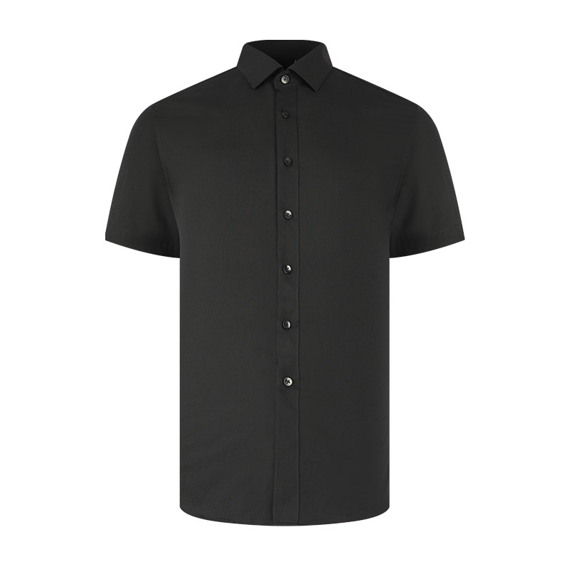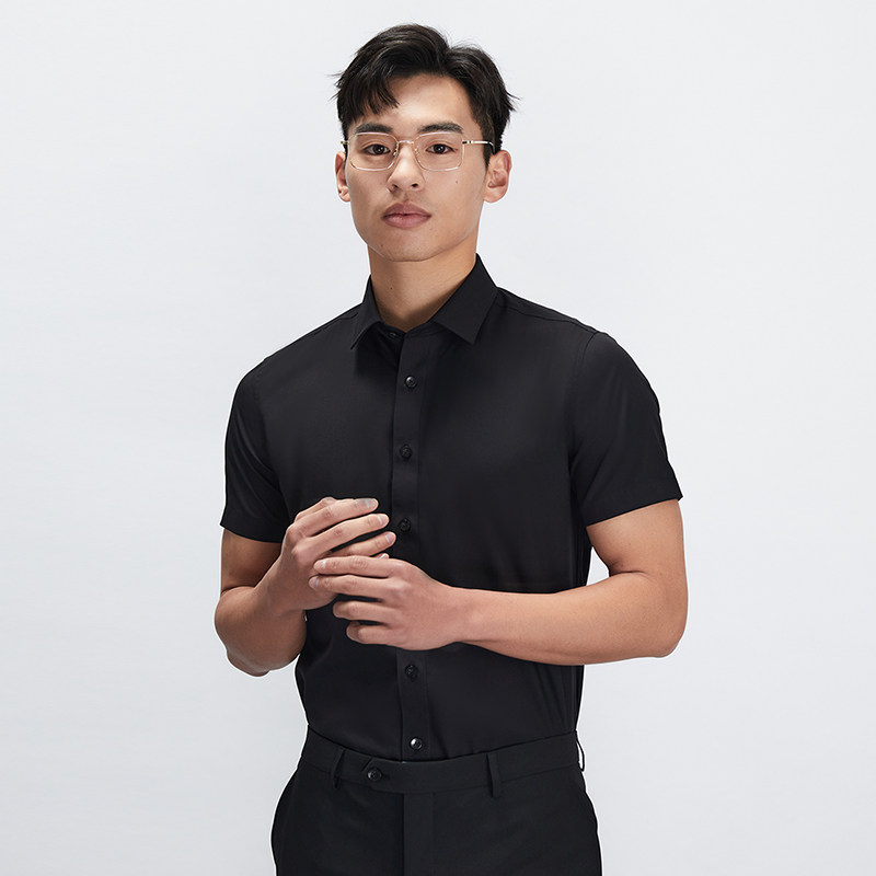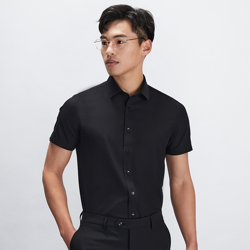【商场同款】乔治白夏季薄款男士短袖衬衫黑色尖领韩版修身衬衣