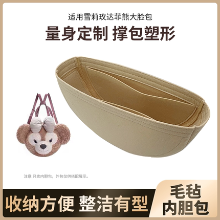 适用于迪士尼雪莉玫达菲熊大脸圆饼包内胆包包中包整理包撑可定制