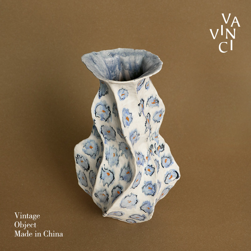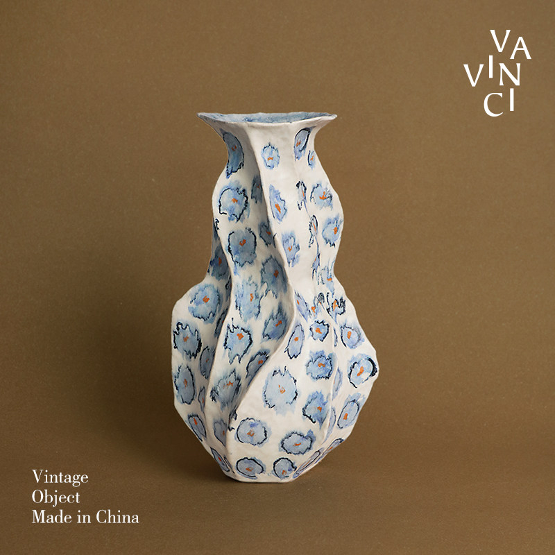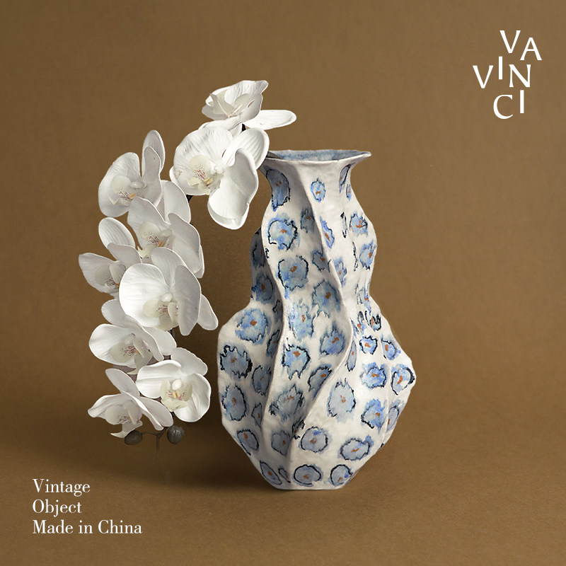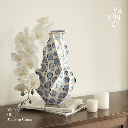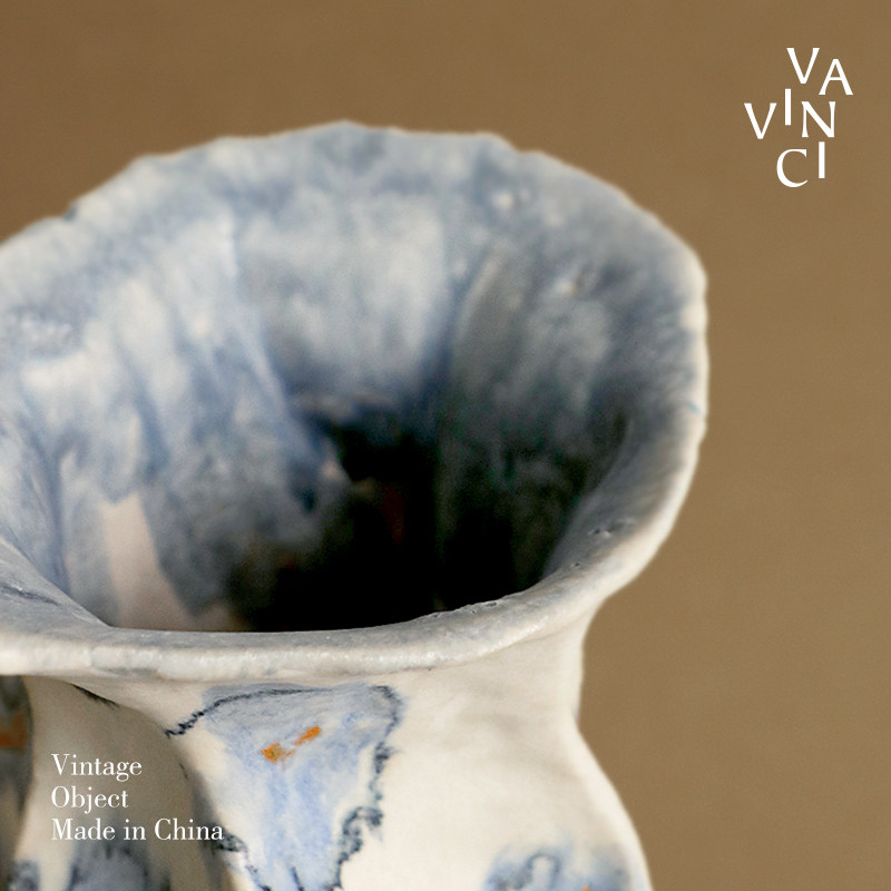 梵其【蓝韵】中古法式手绘青花陶瓷艺术花瓶复古手作花器插花摆件