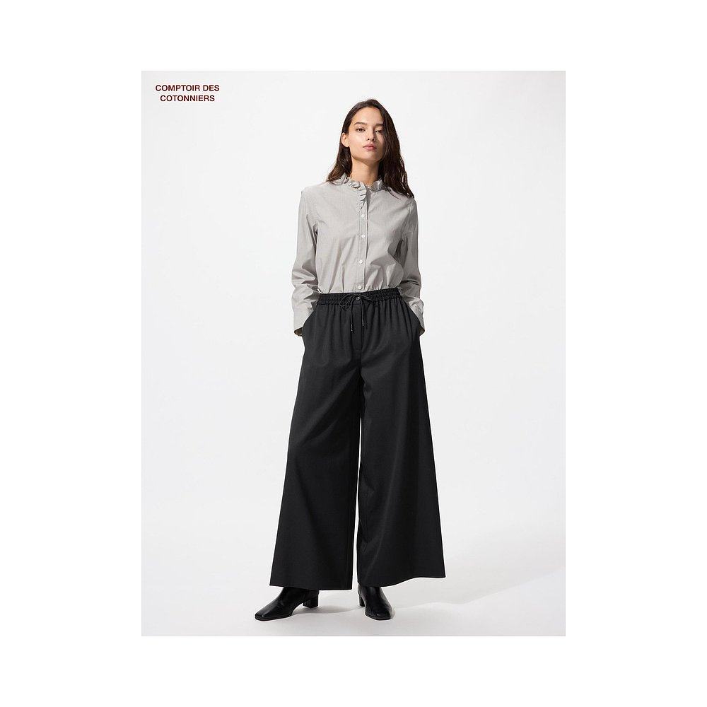 日本直邮Uniqlo 羊毛阔腿裤 480382优衣库宽松裤子休闲裤口袋