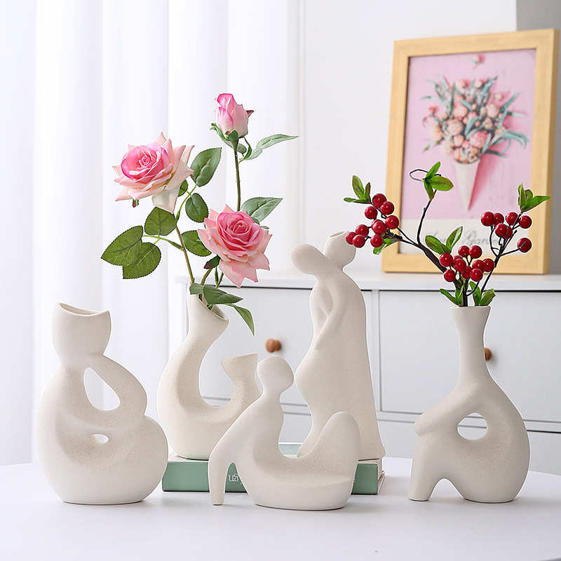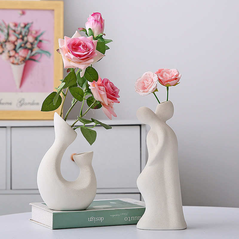 客厅家居花瓶摆件人体造型陶瓷装饰北欧创意白色插花艺术花器
