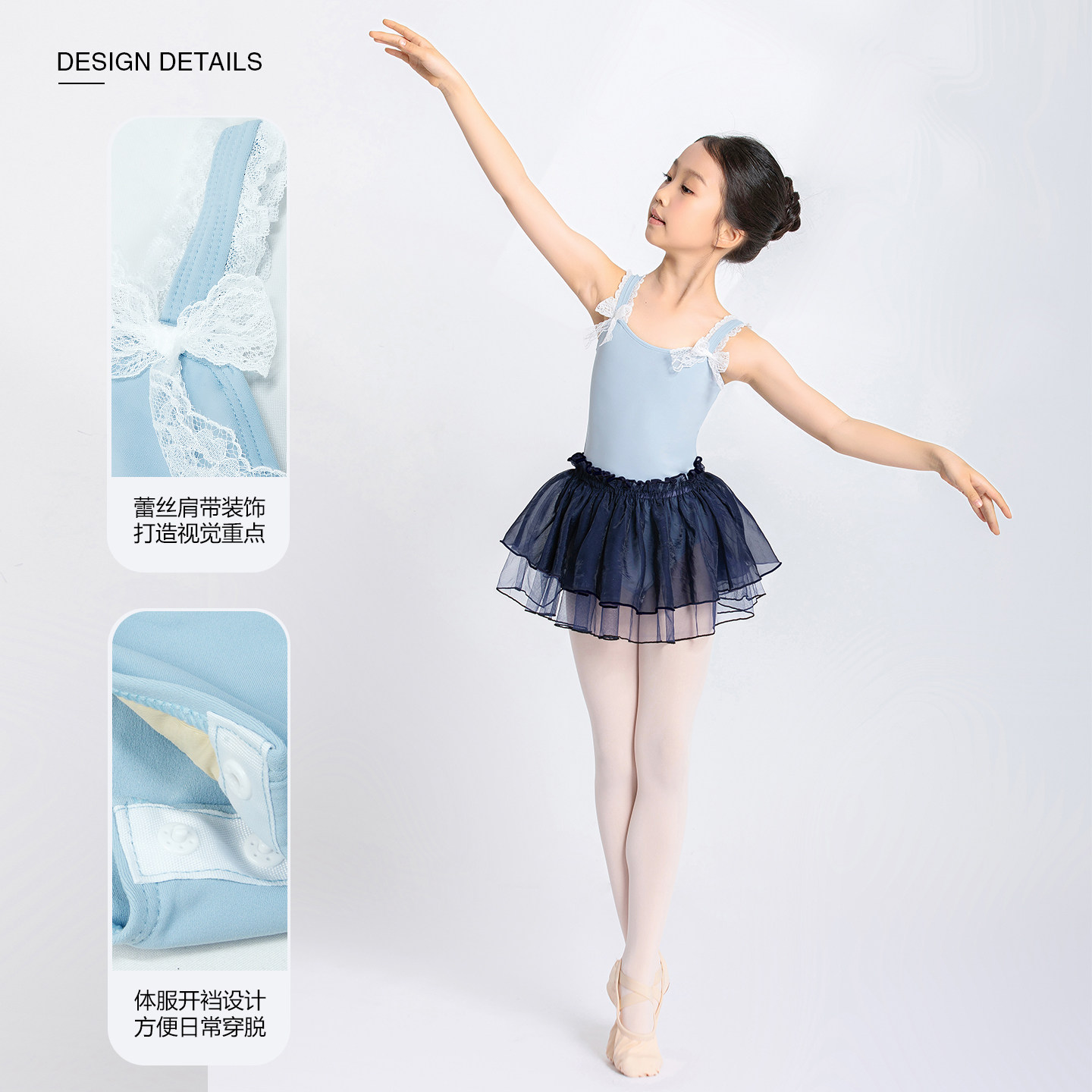 Sansha 三沙儿童宽吊带舞蹈服 蝴蝶结芭蕾舞背心连体服开裆练功服