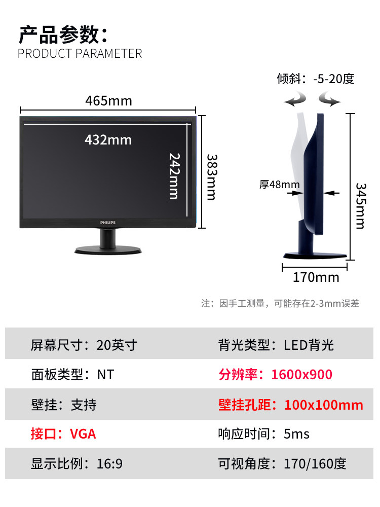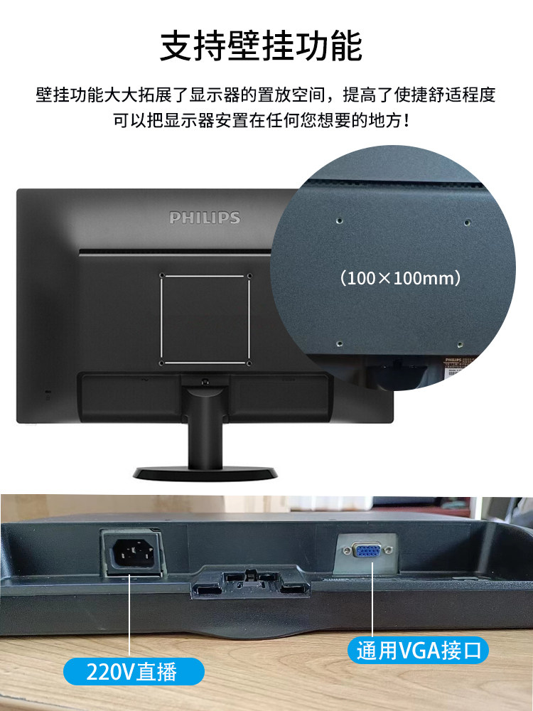 Philips203v5l飞利浦19.5寸宽屏台式电脑液晶显示器高清监控