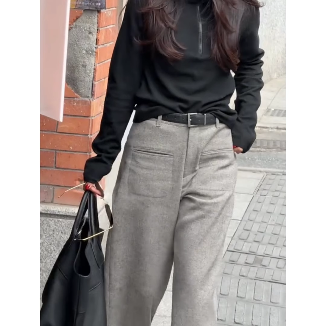 灰色高级感加厚毛呢休闲裤女2025年秋冬季新款高腰显瘦宽松阔腿裤