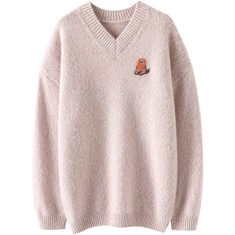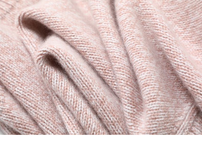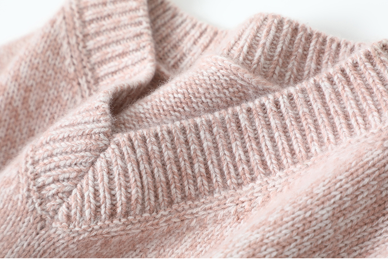 奢美重工!裸粉色手工钉珠重磅加厚羊绒衫女V领中长款纯羊绒毛衣