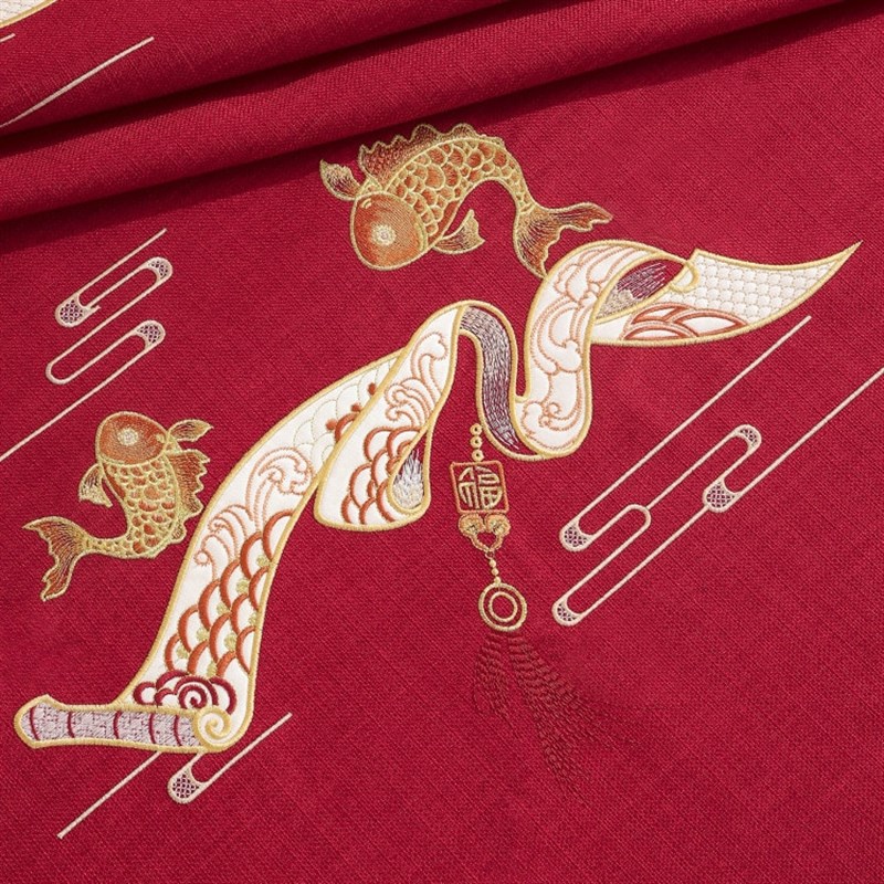 新中式中国风如鱼得水绣花布红木沙D发坐垫抱枕圈椅餐椅垫棉麻布